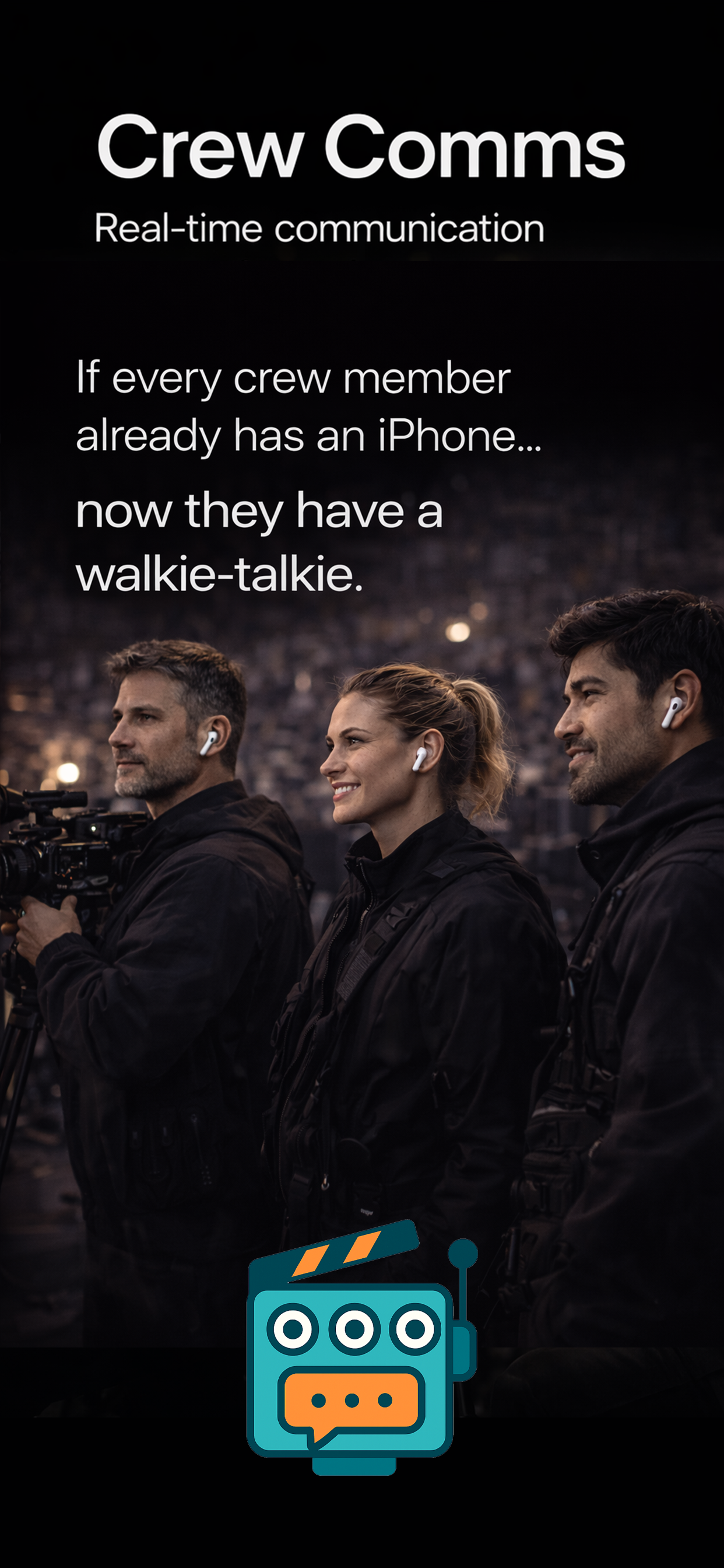 Designed specifically for film sets, live events, and theater productions where clear, instant communication is essential. No headset bundles. No charging stations. No hassle. If every crew member already has an iPhone in their pocket, now they have a walkie-talkie too.
